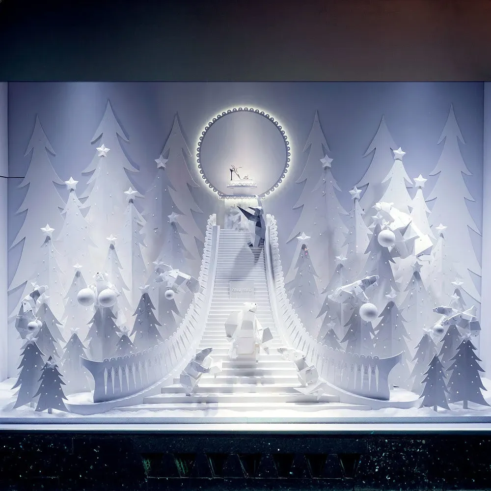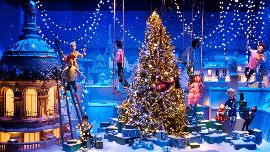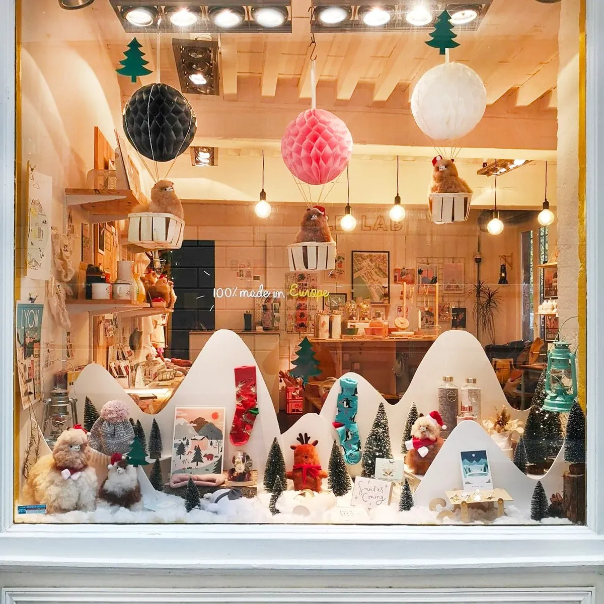 The large windows of the holiday season and the elf workshops inspired the team to create a universe that is both magical and minimalist.